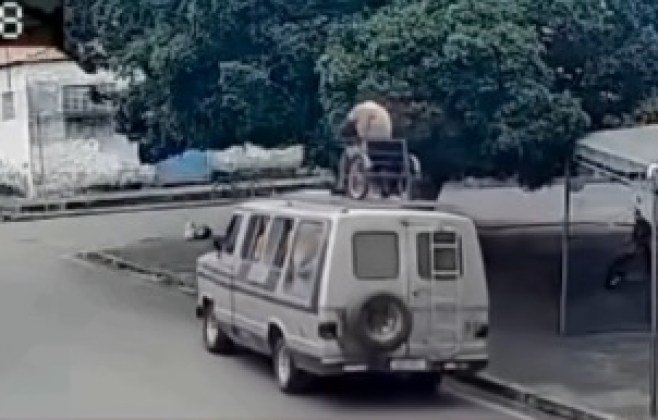 Uma cena perigosa e ilegal chamou a atenção dos moradores de Conceição do Coité, na região sisaleira da Bahia, e foi registrada por câmeras de segurança na última sexta-feira (5). O vídeo, que circula nas redes sociais, mostra um homem em uma cadeira de rodas sendo transportado sentado sobre o teto de uma van em movimento.